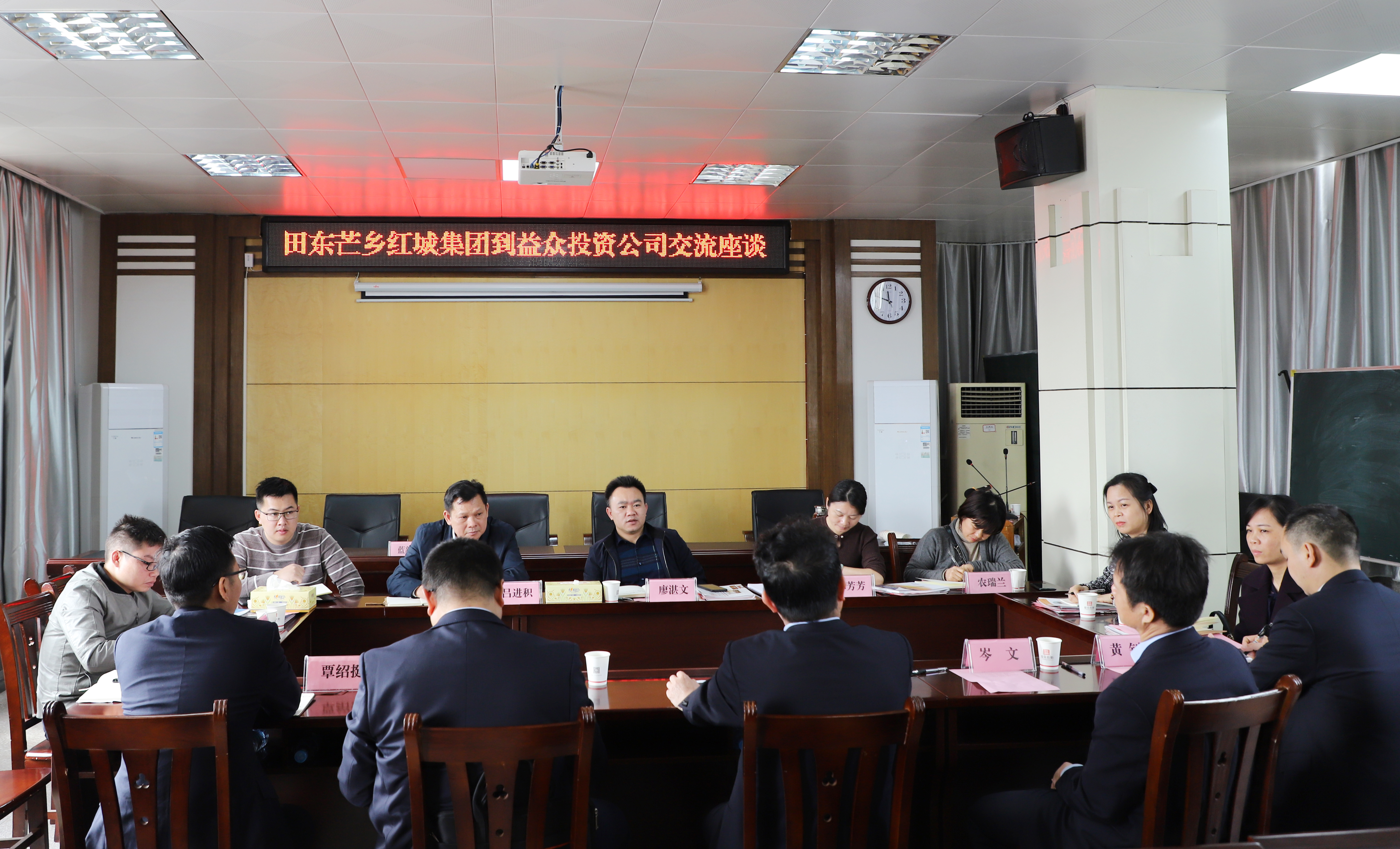 ????????2月20日,廣西田東芒鄉(xiāng)紅城投資集團(tuán)有限公司黨委副書(shū)記、董事長(zhǎng)、總裁廖湛文一行8人到益眾公司考察交流,公司領(lǐng)導(dǎo)班子參加座談交流并介紹情況。公司有關(guān)部門(mén)負(fù)責(zé)人參加。