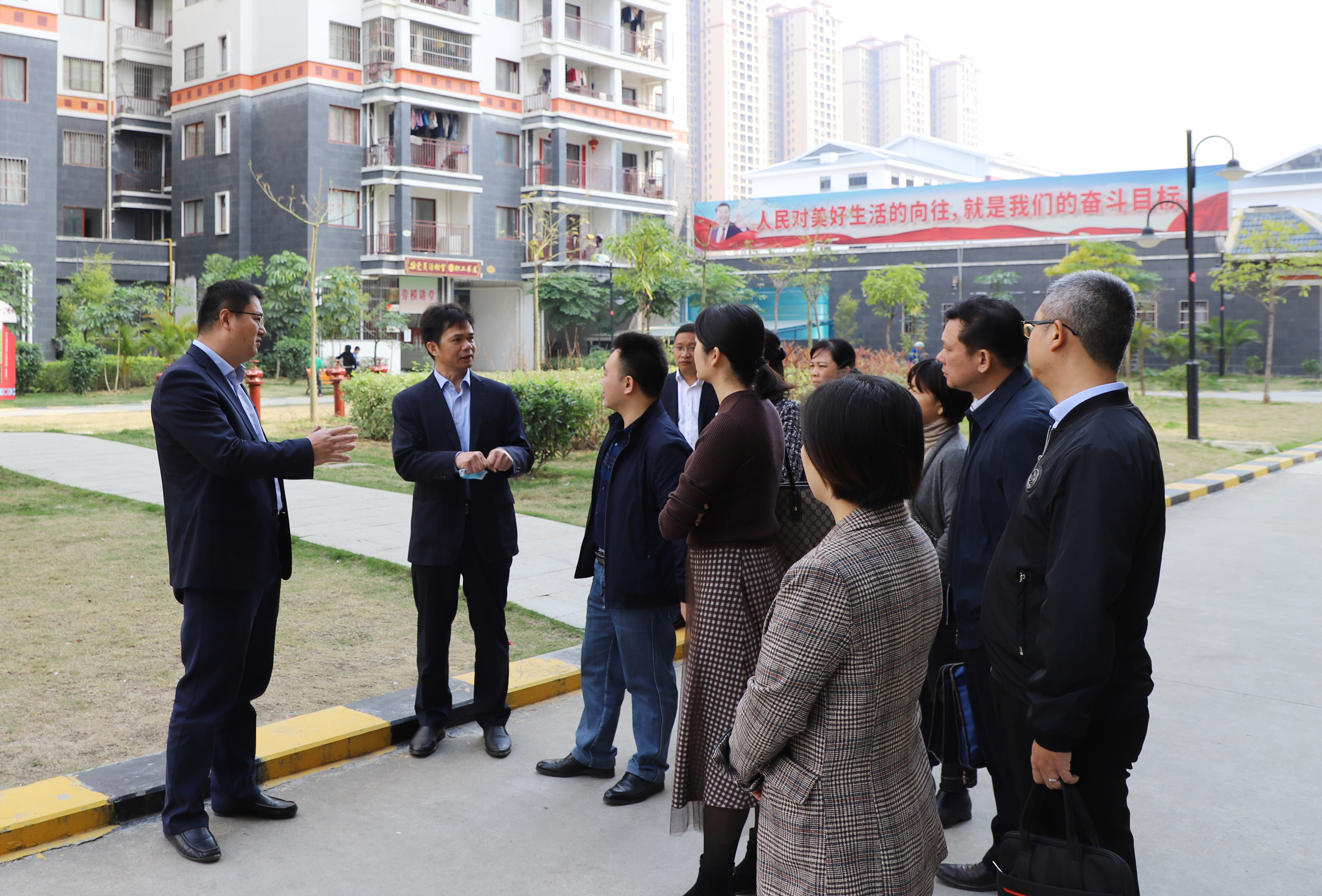 考察組在“老鄉(xiāng)家園—迎龍易地扶貧搬遷安置小鎮(zhèn)”參觀