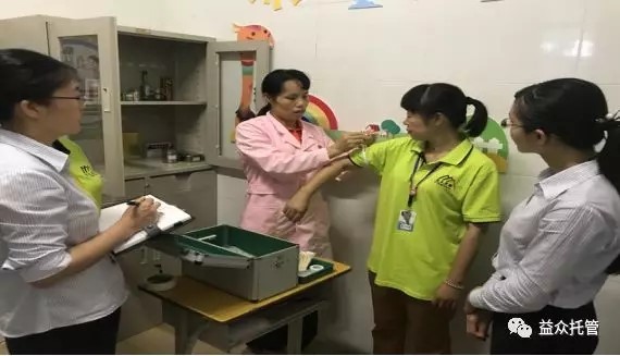 醫(yī)療角成立后,校區(qū)管理人員邀請了逸夫小學(xué)校醫(yī)梁惠珍老師為校區(qū)工作人員培訓(xùn)急救包扎、清創(chuàng)等技能,為托管工作人員普及急救知識。