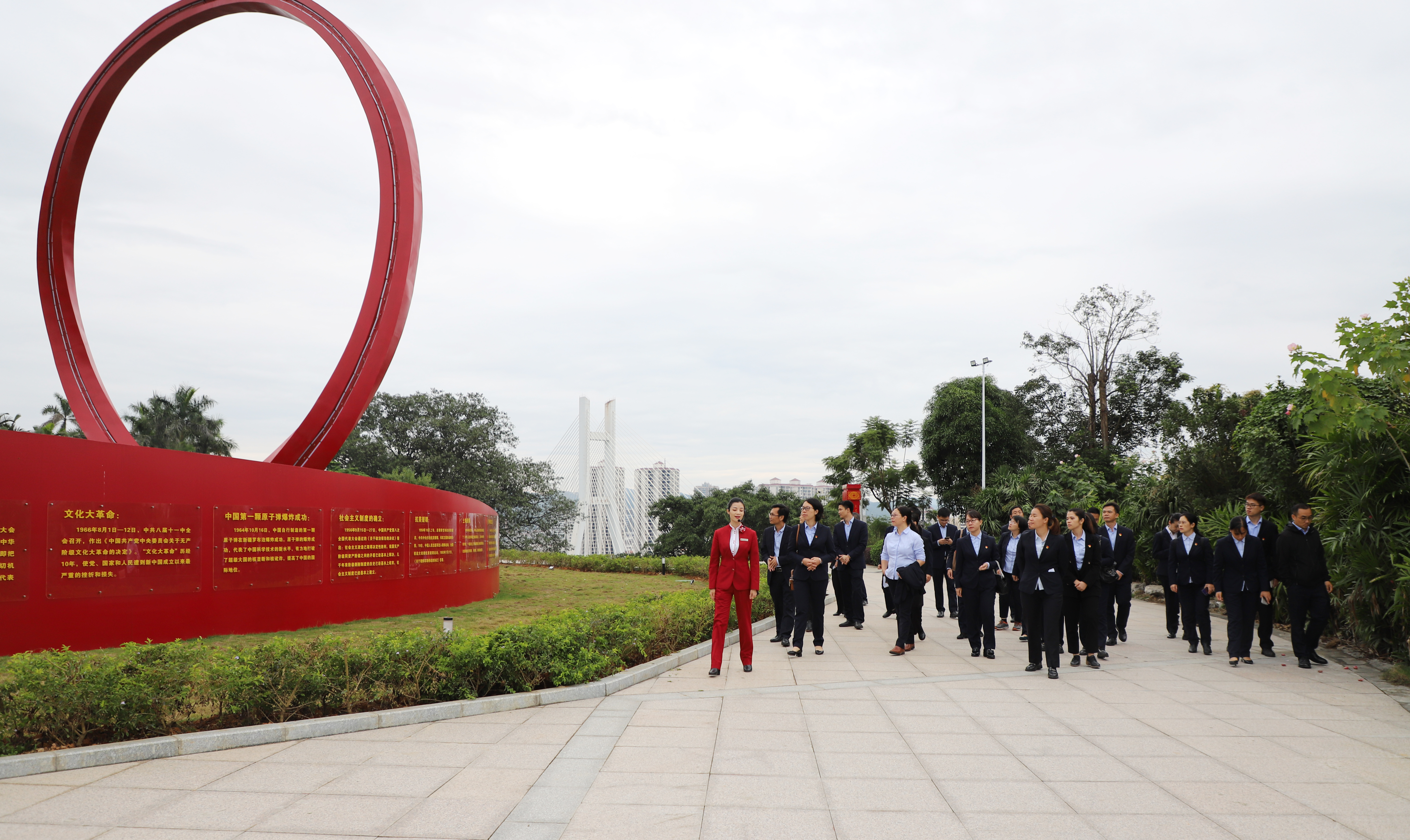 在主題園的初心廣場(chǎng),公司黨支部書記岑文帶領(lǐng)大家重溫了入黨誓詞。隨后,到百年黨史臺(tái)階、新時(shí)代廣場(chǎng)、百色精神園、使命廣場(chǎng)參觀學(xué)習(xí),觀看影像音頻、歷史圖片等。一幅幅照片、一個(gè)個(gè)場(chǎng)景,生動(dòng)再現(xiàn)了百色起義先烈英勇奮斗的光輝歲月,全面展示了中國(guó)共產(chǎn)黨從新民主主義革命時(shí)期到中國(guó)特色社會(huì)主義新時(shí)代,一代又一代中國(guó)共產(chǎn)黨人為實(shí)現(xiàn)“初心”矢志不渝,砥礪奮進(jìn)的偉大歷程,在場(chǎng)的領(lǐng)導(dǎo)干部、黨員無(wú)一不為深深根植于優(yōu)秀傳統(tǒng)文化之中的中華民族精神所震撼。