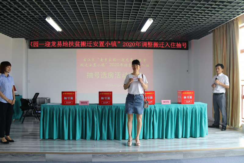 6月14日,右江區(qū)“老鄉(xiāng)家園—迎龍易地扶貧搬遷安置小鎮(zhèn)”2020年調(diào)整搬遷入住工作拉開了序幕。當(dāng)日上午,符合本次新調(diào)入搬遷對(duì)象的搬遷戶在益眾公司老鄉(xiāng)家園(益眾.尚城商業(yè)樓B1棟)辦公區(qū)舉行現(xiàn)場(chǎng)抽號(hào)選房、簽約手續(xù)。